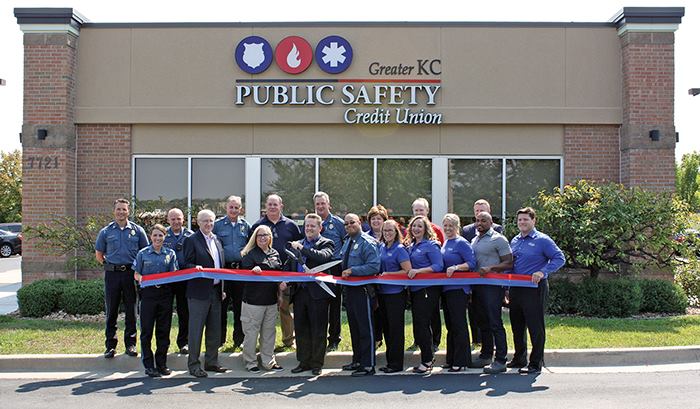 public safety credit union staff in front of new building